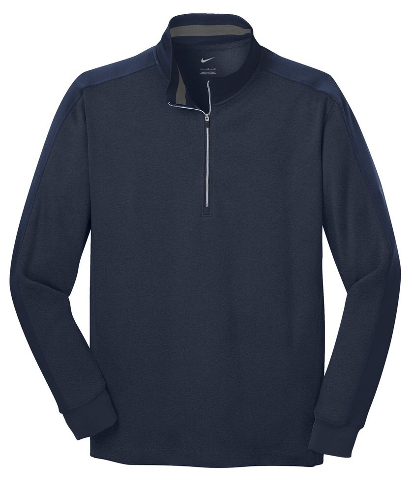 A boldly striped inner collar and reverse coil zipper give this cover-up an edge. Of course, it also performs with Dri-FIT moisture management technology. The design features a flat knit collar and cuffs and an open hem. The contrast Swoosh design trademark is embroidered on the upper left sleeve. Made of 8.3-ounce, 100% Dri-FIT polyester.